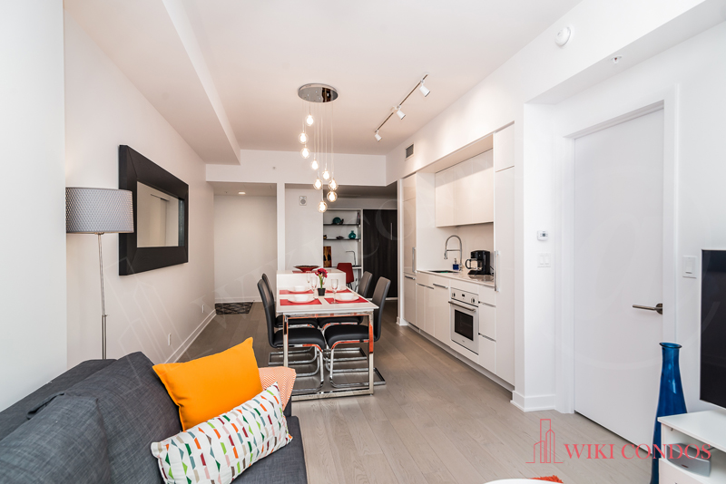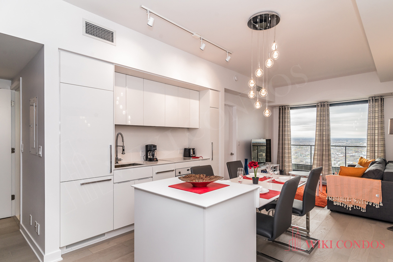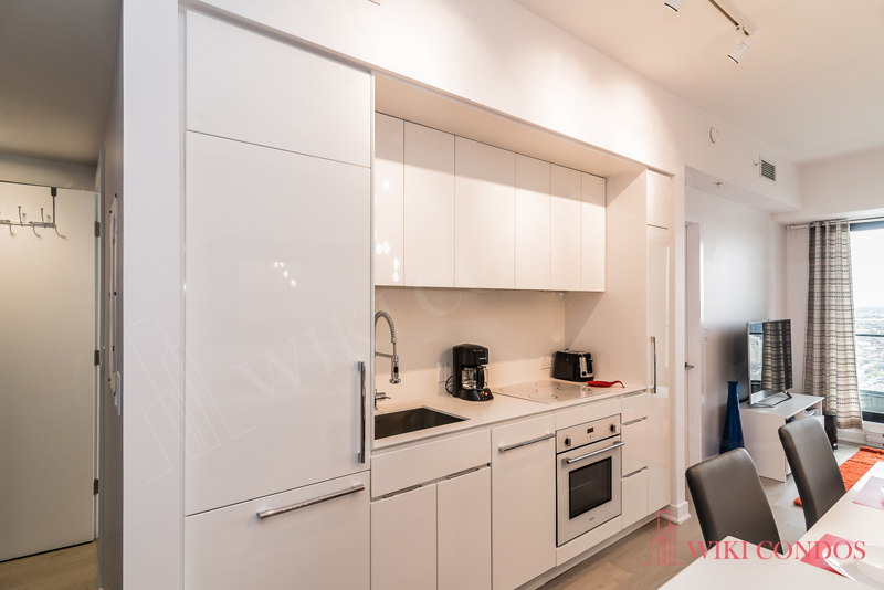 Interior: Kitchen and & bathrooms include a contemporary design. Quartz kitchen countertop and backs plash and Sleek Euro style appliances. Premium engineered wood flooring. White front loading stacked washer and dryer included for laundry. Uniformed Concierge stationed in the Main Lobby-On-site management(during weekday business hours) for Secure access control Exterior doors from common areas and amenities monitored by Concierge.