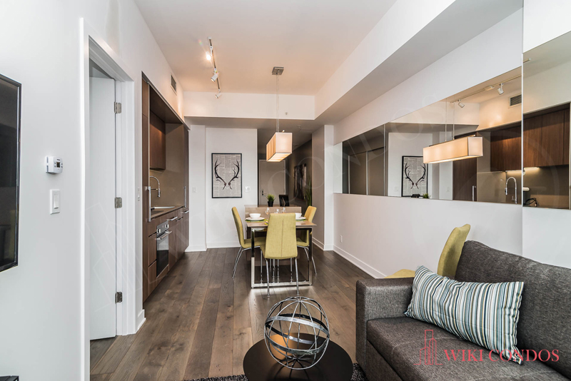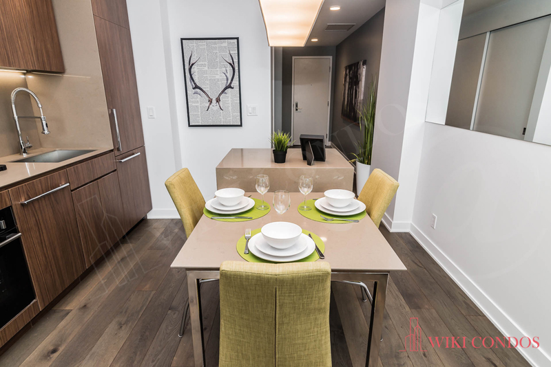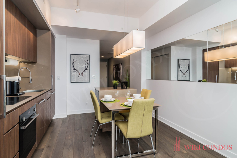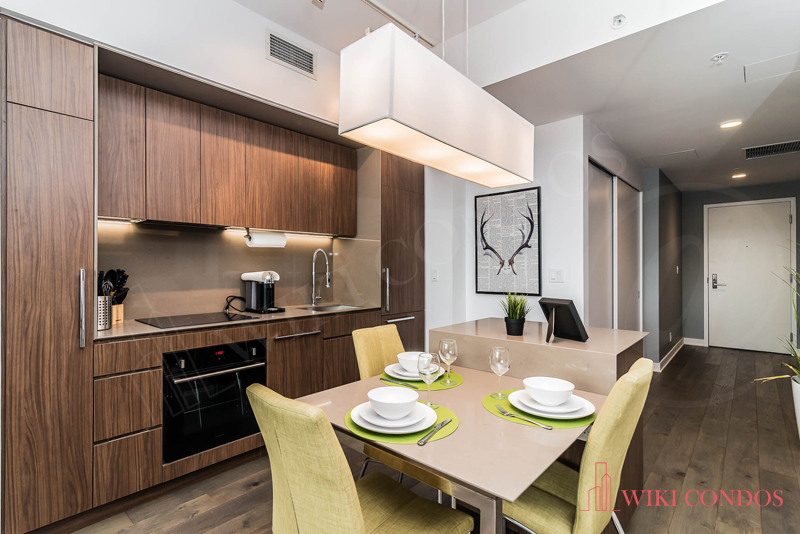 Interior: Kitchen and & bathrooms include a contemporary design. Quartz kitchen countertop and backs plash and Sleek Euro style appliances. Premium engineered wood flooring. White front loading stacked washer and dryer included for laundry. Uniformed Concierge stationed in the Main Lobby-On-site management(during weekday business hours) for Secure access control Exterior doors from common areas and amenities monitored by Concierge.