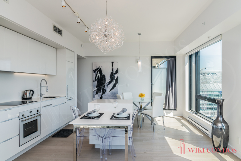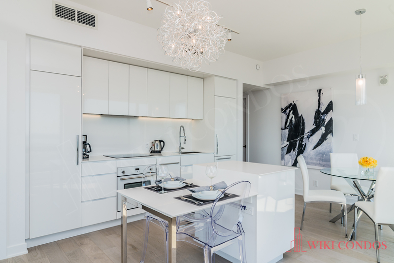 Interior: Kitchen and & bathrooms include a contemporary design. Quartz kitchen countertop and backs plash and Sleek Euro style appliances. Premium engineered wood flooring. White front loading stacked washer and dryer included for laundry. Uniformed Concierge stationed in the Main Lobby-On-site management(during weekday business hours) for Secure access control Exterior doors from common areas and amenities monitored by Concierge.