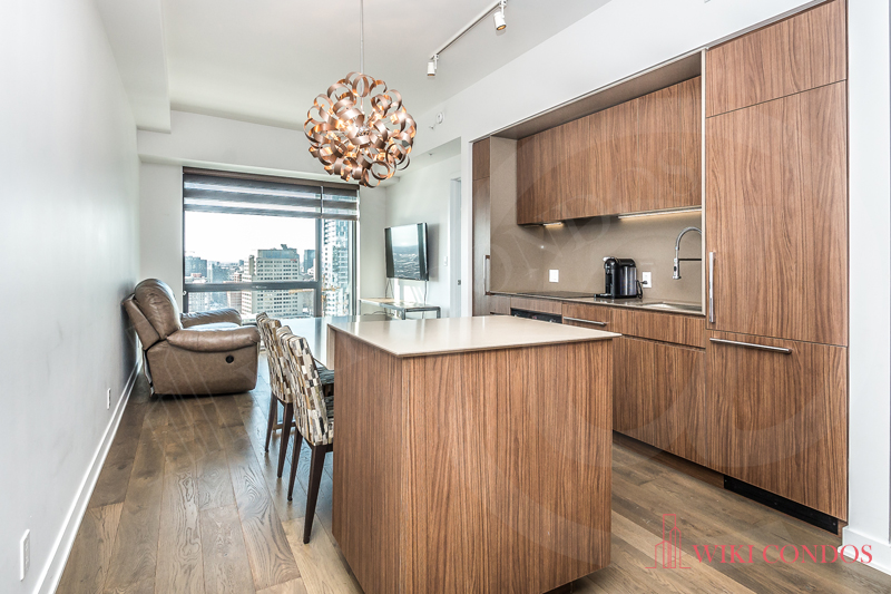 Interior: Kitchen and & bathrooms include a contemporary design. Quartz kitchen countertop and backs plash and Sleek Euro style appliances. Premium engineered wood flooring. White front loading stacked washer and dryer included for laundry. Uniformed Concierge stationed in the Main Lobby-On-site management(during weekday business hours) for Secure access control Exterior doors from common areas and amenities monitored by Concierge.