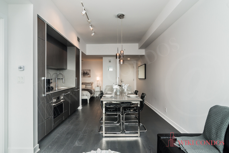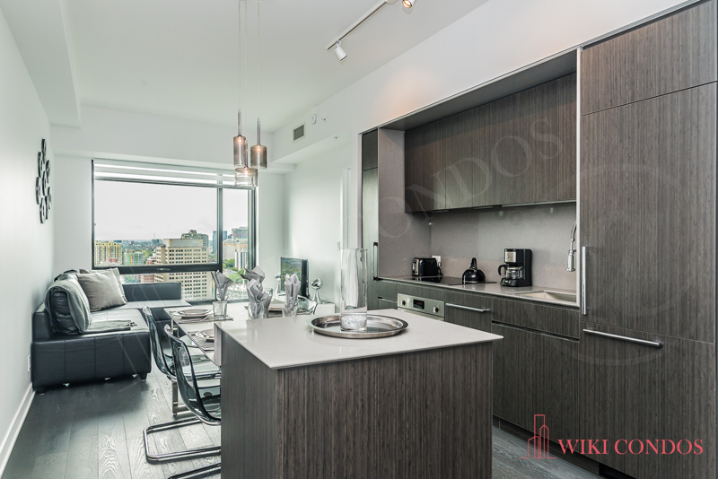 Interior: Kitchen and & bathrooms include a contemporary design. Quartz kitchen countertop and backs plash and Sleek Euro style appliances. Premium engineered wood flooring. White front loading stacked washer and dryer included for laundry. Uniformed Concierge stationed in the Main Lobby-On-site management(during weekday business hours) for Secure access control Exterior doors from common areas and amenities monitored by Concierge.