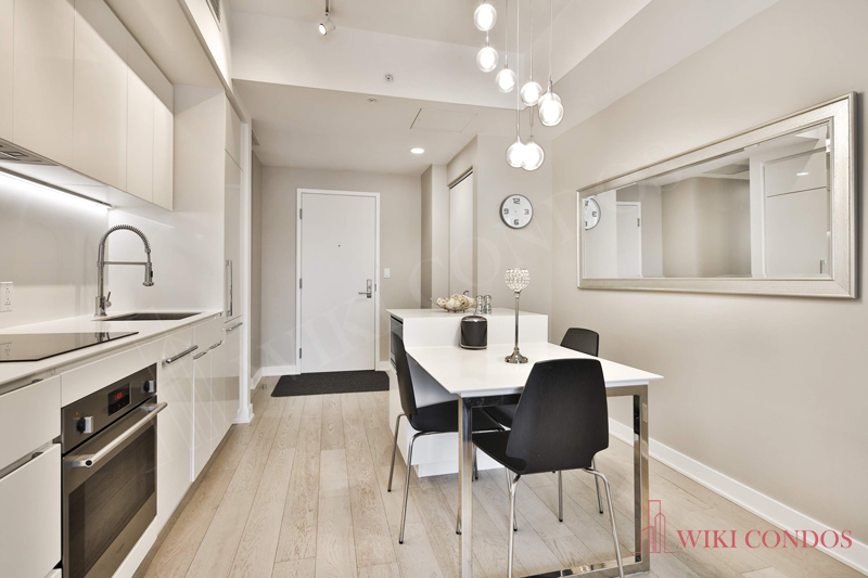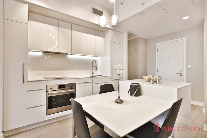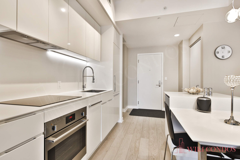 Interior: Kitchen and & bathrooms include a contemporary design. Quartz kitchen countertop and backs plash and Sleek Euro style appliances. Premium engineered wood flooring. White front loading stacked washer and dryer included for laundry. Uniformed Concierge stationed in the Main Lobby-On-site management(during weekday business hours) for Secure access control Exterior doors from common areas and amenities monitored by Concierge.